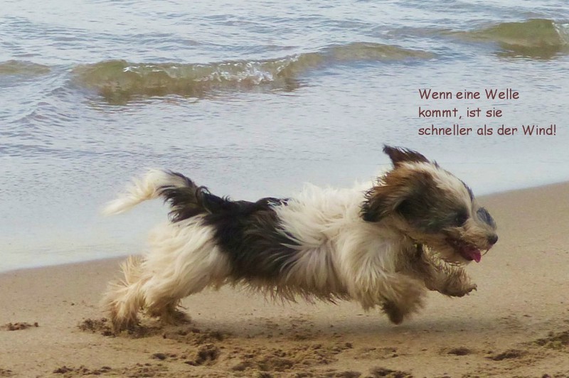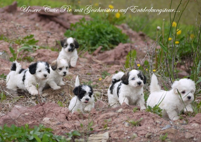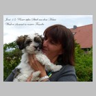 Unsere Chouchou (= französisch "Liebling") ist ein waschechter Wuslon und wurde dort auf den Namen "Cutie Pie" getauft. Da sie wirklich ein absolut süßes Stück ist, hätten wir diesen Namen gerne beibehalten, aber Cutie klingt in Hundeohren fast wie "Gunni" (und damit fühlte sich diese jedesmal angesprochen) und Pie wie "nein". Also tauften wir die Kleine um und wählten - wir haben ja einen Faible für französische Namen - ein französisches Pendant