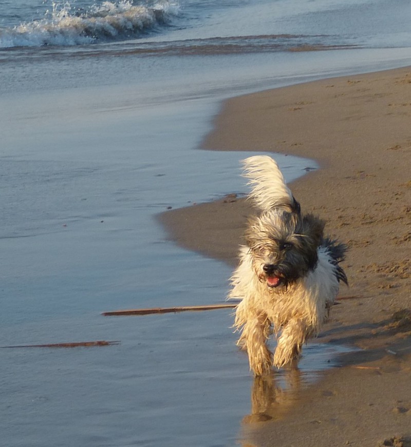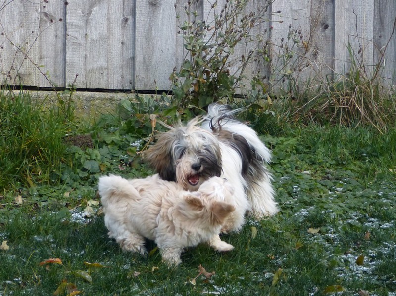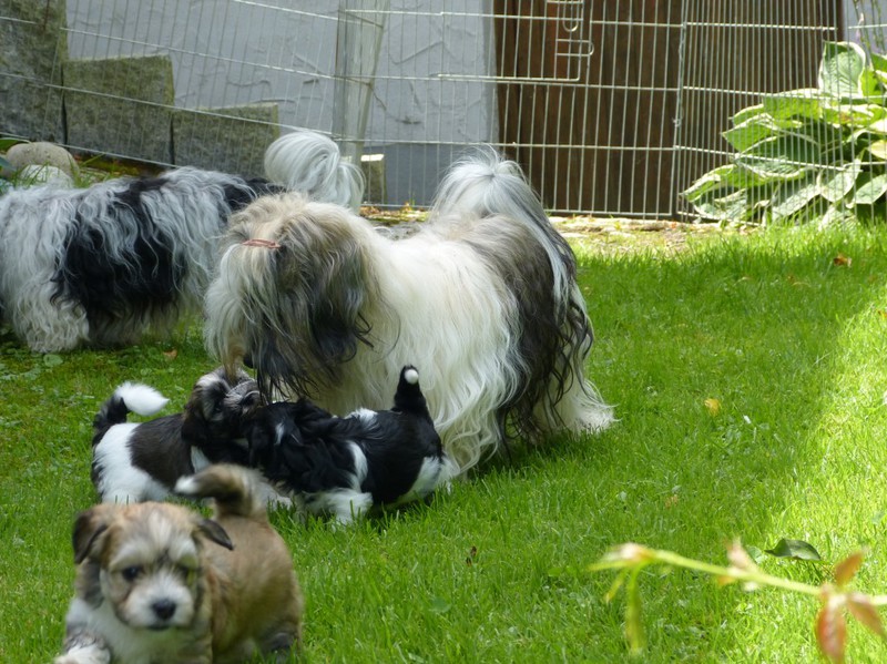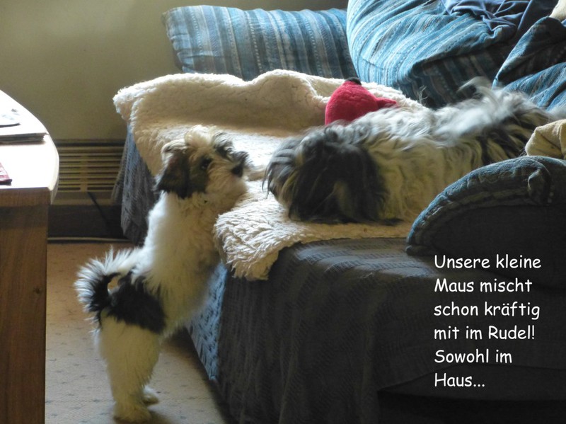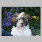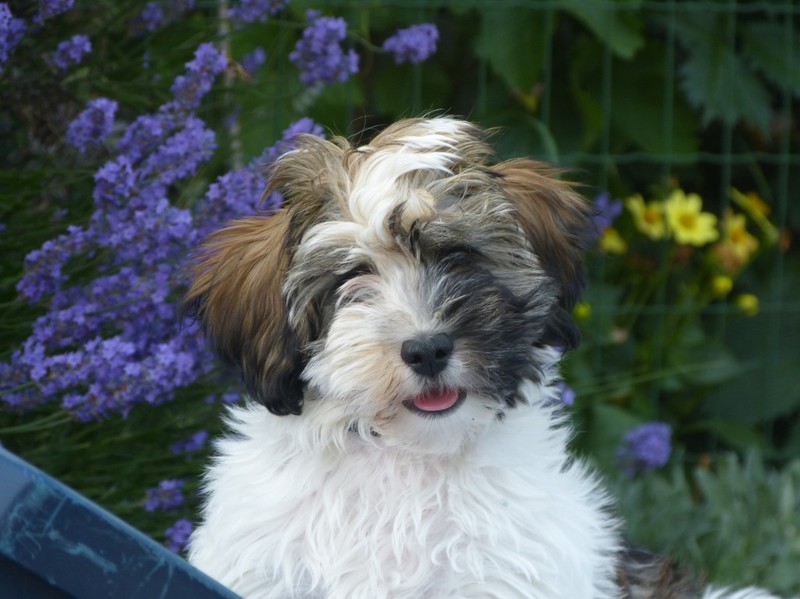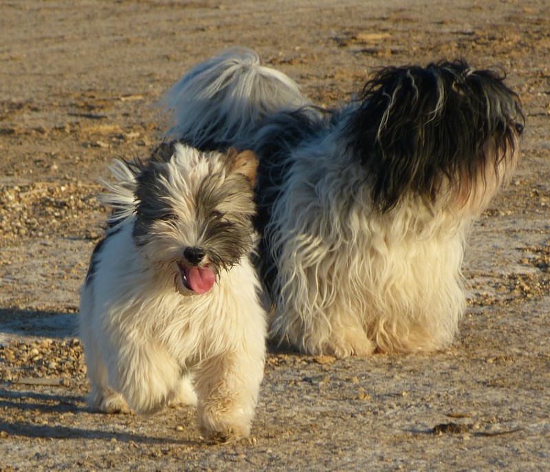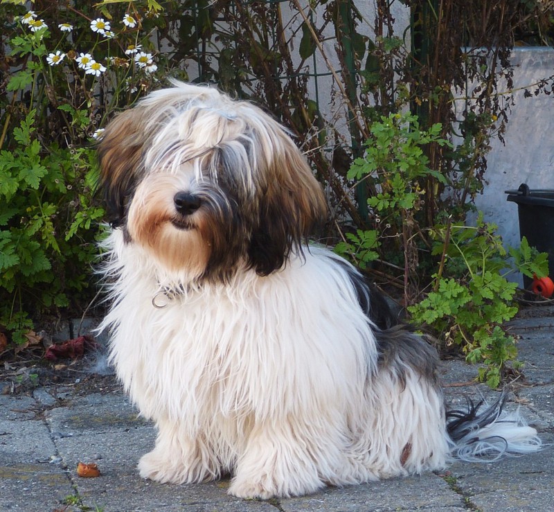 Chouchou ist extrem wendig und sportlich und liebt es, durchs Gelände zu rasen. Wie alle Havis steht sie auf Plüschtiere, mit denen sie sich auch gerne selber beschäftigt. Inzwischen legt sie davon auch keine Depots mehr im Garten an - in den Wochen nach ihrem Einzug bei uns neigte sie hierin zu räuberischer Vorratshaltung: Baby Hannas Spielzeug verschwand mitunter so schnell von der Krabbeldecke, dass wir erst die (uns zum Glück schon bekannten) Depots aufsuchen und ausräumen mussten - allesamt an lauschigen Plätzchen im Garten befindlich, bis das Baby wieder alle Plüschtiere und Beißringe hatte. Chouchou liebt es zu kuscheln und schafft es, in gestreckter Relaxhaltung auf dem Rücken ein Drittel des großen Sofas zu blockieren. Eine weitere Eigenart ist ihre Art der Kontaktaufnahme: Menschen und Hunde möchte sie am liebsten immer mit der Nase gaaaanz nahe kommen und dort beriechen. Während sich viele Zweibeiner darüber freuen, dass sie gleich so intim wird, finden fremde Hunde das eher ungezogen und unangemessen indiskret und dreist. Chouchou ist eine absolut treue und liebe Seele und wie ein typischer Havi ein Schatten ihrer Zweibeiner - wo diese sind, will auch sie sein. Schon im zarten Alter von 10 Wochen begleitete sie Frauchen selbstverständlich ohne Leine durch Baumärkte und Gartencenter.