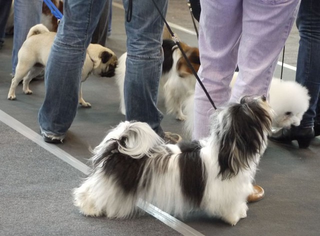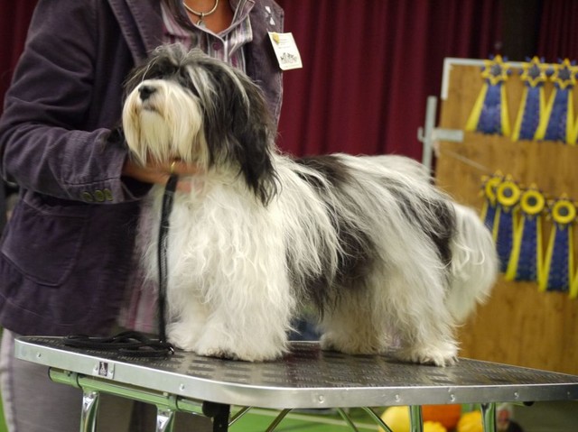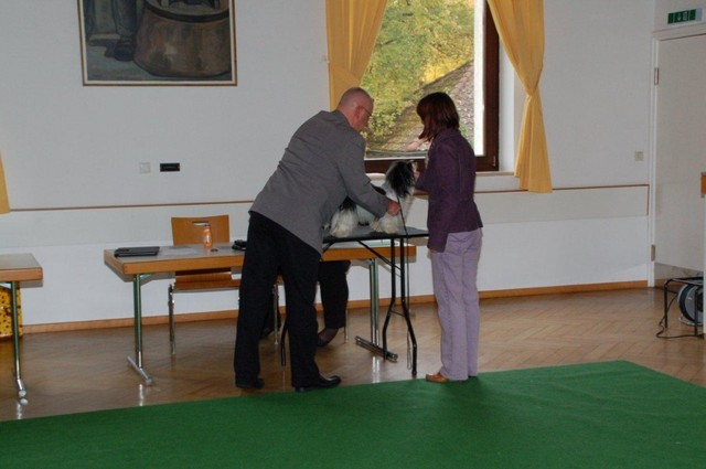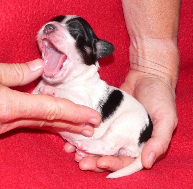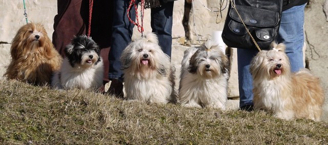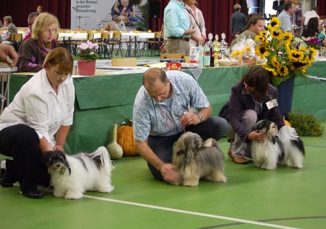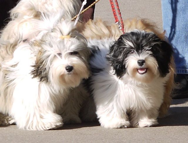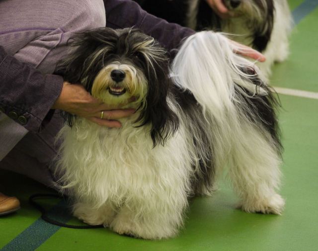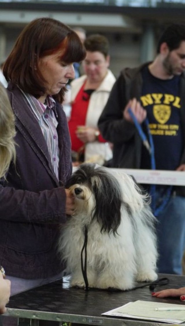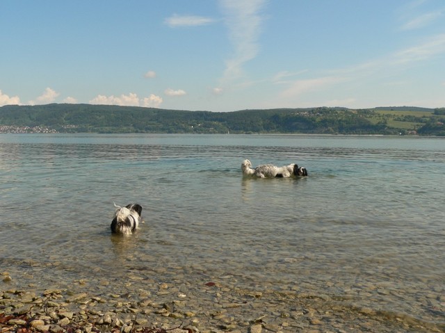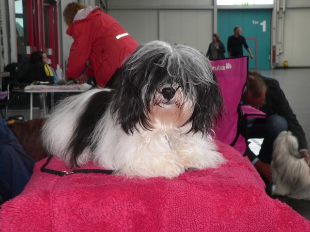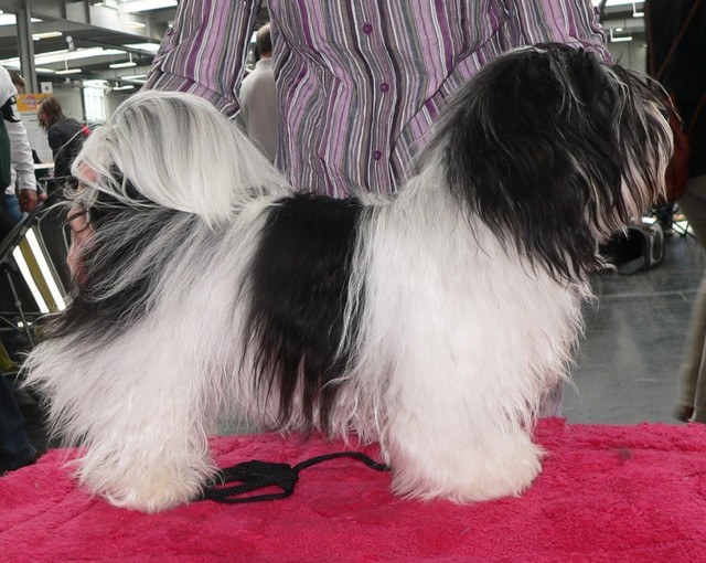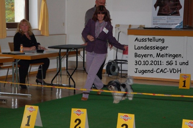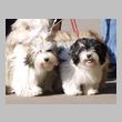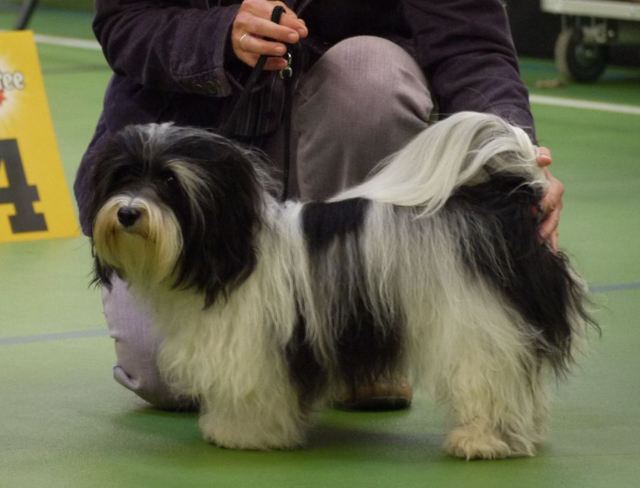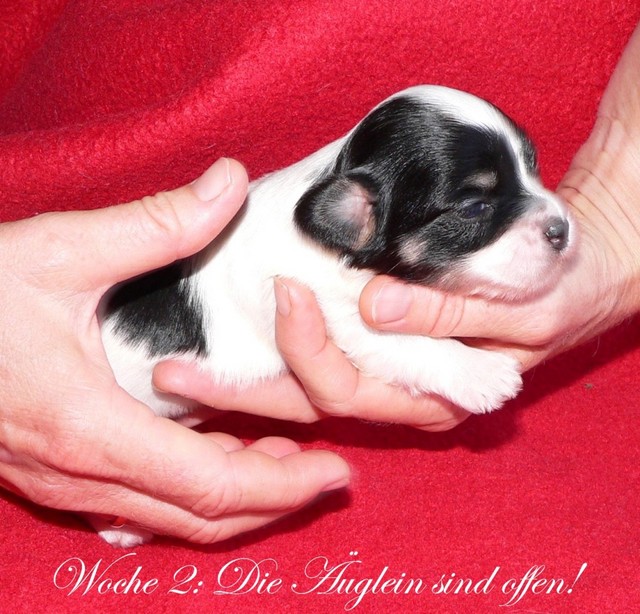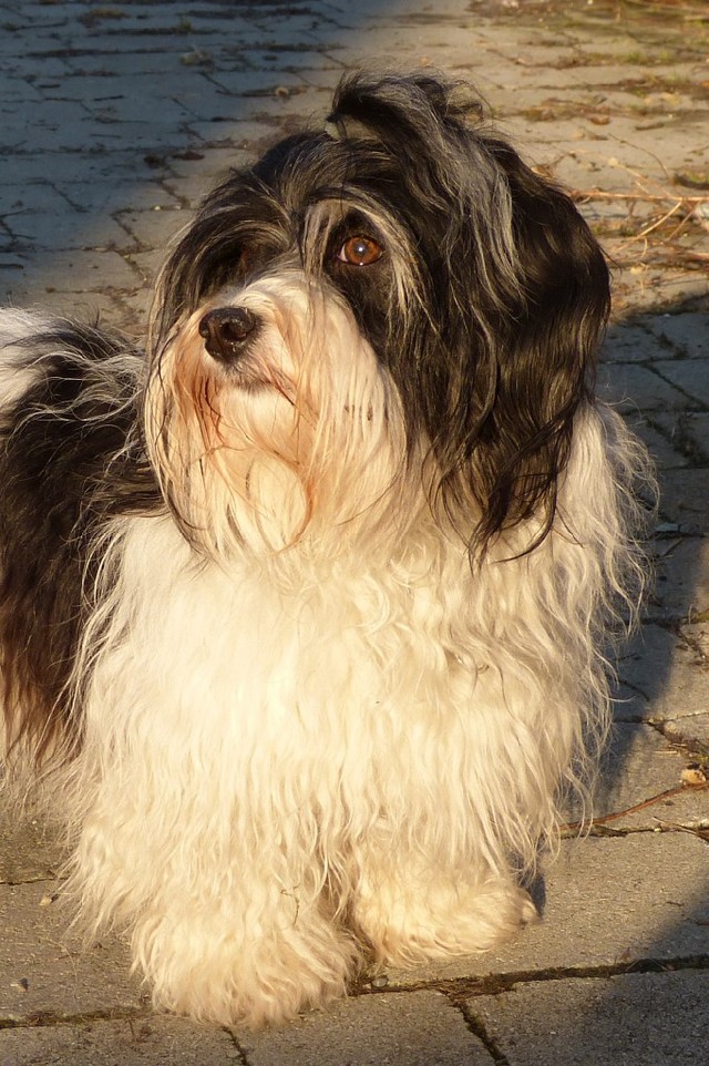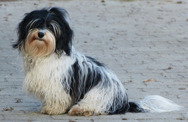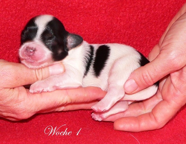 Unsere Harmony vom Birkenhain (H-Wurf, geboren am 19.8.2010), genannt Mona, war der schwarz-weiße Miniaturlandseerl Mona ist eine intelligente und temperamentvolle Havihündin, die seit dem zarten Alter von acht Wochen das Zweibeinerrudel am Morgen mit einem kräftigen "Hohooo!" begrüßt. Überhaupt setzt sie alle Arten von Knurrlauten ein, um ihrem überschäumenden Gefühlsleben Ausdruck zu verleihen; während mancher Besucher dann mitunter etwas zusammenzuckt, wissen WIR, dass ihre Knurrlaute variantenreicher Ausdruck von Begeisterung und überbordender Lebensfreude sind: Havis tragen ihr Herz auf der Zunge! Mona ist stets klar im Kopf und weiß genau, was sie will und wie sie es erreichen kann. Mühelos setzt sie sich sogar gegenüber den Landseern durch - schließlich ist sie das Kind von Rudelchefin Gunni und gleicht dieser sowieso sehr im Wesen. Wie Gunni kann sie fernsehen und liebt Tierfilme. Mona ist ein äußerst humorvoller Hund, der sogar lachen kann. Wahrscheinlich auch weil sie unser jüngstes Nesthäkchen ist und wir ihre Schlitzohrigkeit und Verschmitztheit einfach zu putzig finden, mangelt es ihr noch etwas an Seriosität und innerer Reife. Sockenverschleppen macht aber auch tierisch Spaß! Kein Gang morgens aus dem Schafzimmer ohne ein Wäschesouvenir von Frauchen ..unten an der Treppen noch schnell einen Socken von Herrchen und ab damit raus ins Grüne .. Spätestens wenn sich die Teile dann wieder einmal um das Innenleben des Rasenmähers wickeln, nehme ich mir vor, diesem Treiben endgültig Einhalt zu gebieten .. aber Monis breites Grinsen bis über beide Ohren, das freudige Getrippel mit hocherhobener Rute und das triumphale Imponiertragen der Beute am nächsten Tag lassen mich diesen Vorsatz dann wieder vertagen .. Bei allem Temperament und halbstarkem Übermut ist Mona aber durchaus gehorsam und havanesertypisch folgsam und anpassungswillig. Sie will nicht renitent sein, sondern gefallen. In Windeseile lernt sie Vokabeln und entwirft kreativ neue, tolle Spielideen, denen keiner widerstehen kann. So bringt sie als Betriebsnudel immer wieder Schwung in die Bude. Besonders wenn Welpen da sind, nimmt sie sich begeistert der Kleinen an - spätestens wenn diese dann so groß sind, dass man ordentlich Fangespielen kann, ist sie der absolute Star und genießt es in vollen Zügen, wie die Kleinen sie anhimmeln und ihr nachzueifern versuchen oder ihre Rase-Show-Runden mit heruntergeklapptem Kiefer und staunendem Blick verfolgen. Finden sich keine Spielpartner, nimmt sie sich aber nach Havaneserart auch zurück und kann stundenlang dösen oder schmusen und kuscheln. Am liebsten steigt sie dabei auf die Sofalehne und schmiegt sich gaaanz eng an die Wangen ihrer Zweibeiner.