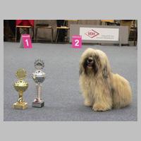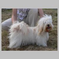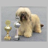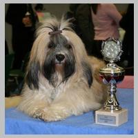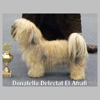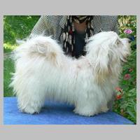STECKBRIEF "Und der Steckbrief?" fragte man nun bei meinem Frauchen an: Wesen? Temp'ramentvoll, frei! Kilos? Manchmal 6 Punkt 3! Shows? Ich bringe manches Mal mit nach Hause 'nen Pokal. Haare? Seidig, wellig, reich! Beinchen? Parallel - und gleich! Rücken? Fest, gerade, schön! Wollt Ihr meine Zähne sehn? 6/6-Schere , wohlgepflegt, was mein Lächeln angeregt: Dies erfreut so manche Frau, Sei sie Mensch, sei Hund: "Wow, Wow!" Höre Frauen innig zu, freu' mich stets aufs Rendezvous. ... Ich - charmant? Filou?? Und keck??? Wuff- jetzt lauf ich einfach weg ... P.S.: Weil Frau Gauß von "Vs" gehört, Hat sie mich schon angekört. Meine Titel schrieb sie fein in die Ahnentafel rein. Herzlich Dank, oh, Zuchtbuch-Frau: Klug und nett und stets genau! (Von Donatello aus Angaben des Zuchtzulassungs-Berichtes und einiger Donni-Fans zusammengestellt) |