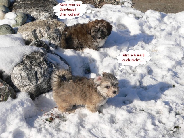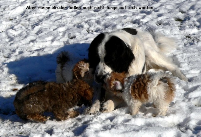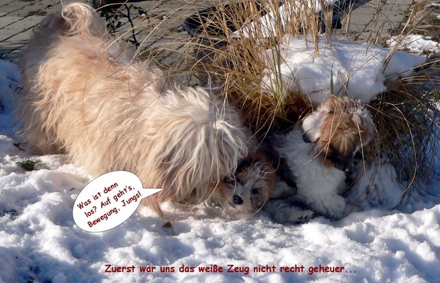 Am Wochenende ist der Winter eingekehrt - und dank des Sonnenscheins war den Welpen ein aufregender Schneetag im Garten mit völlig neuen Entdeckungen und Sinneserfahrungen beschert...