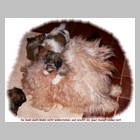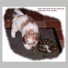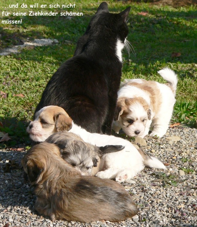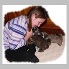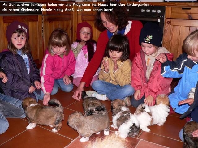 Im Haus und im Grundstück erweitern sie täglich ihren Radius. Wenn das Wett0ml;ssen die Kleinen das Haus hüten...damit dann keine Langeweile aufkommt und wir die Prägungszeit optimal nützen können, sorgen wir für ein abwechslungsreiches Programm: Fast täglich kommen nun Besucher verschiedensten Alters und Aussehens, darunter z.B. auch Kindergarten- und Schulkinder. Diese entpuppen sich dann als wunderbare Spielgefährten...Unser Wohn- und Esszimmer und die Küche bieten sich für ein vielfältiges Geräuschtraining an: Es gibt kein Küchen- oder Haushaltsgerät, das die Kleinen nicht schon kennen gelernt haben. Auch klappernde Topfdeckel oder drahtige Schneebesen sind wunderbare Spielgeräte. Zusätzlich bieten wir weitere interessante Geräusche über CDs an, auf denen dann z.B. Feuerwerksgeräusche, Flugzeuge, Züge, Heißluftballons und vieles mehr zu hören sind.