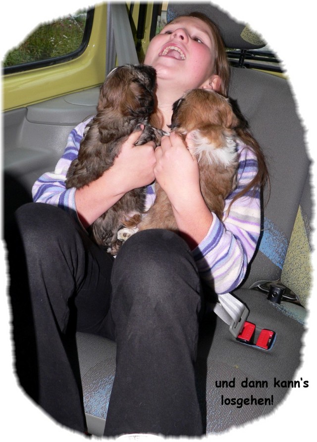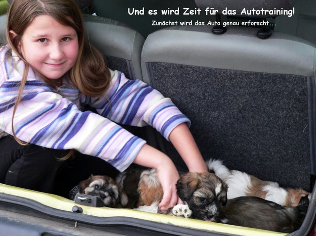 Schließlich muss auch das Autofahren nun regelmäßig geübt werden, damit es für die Kleinen bald selbstverständlich ist. Auf diese Weise vergeht die Zeit wie im Flug und wieder einmal beginnen wir wehmütig an den Abschied zu denken, während die neuen Familien unserer Hundekinder die Tage zählen, bis sie ihr neues Familienmitglied endlich zu sich holen dürfen...