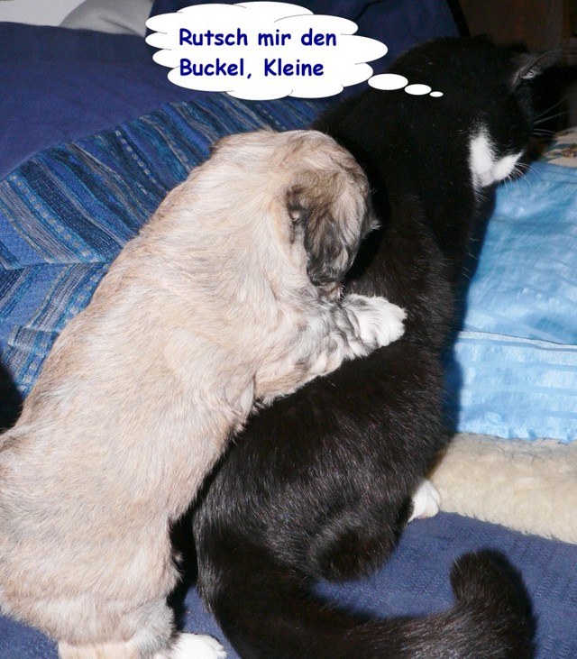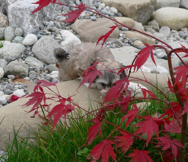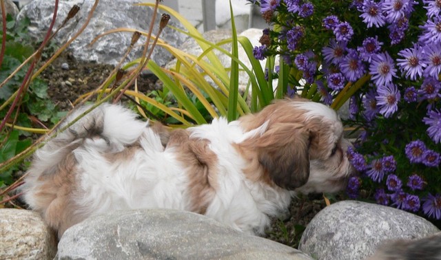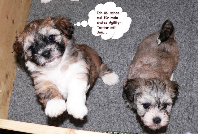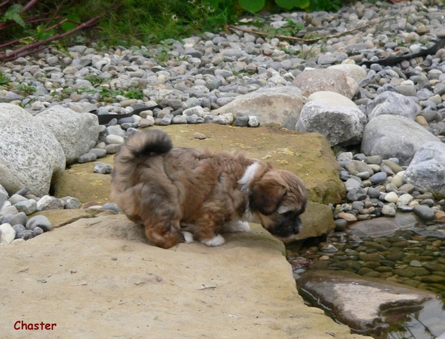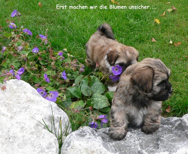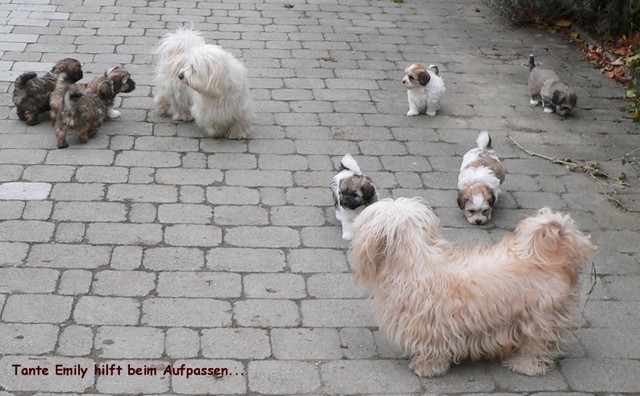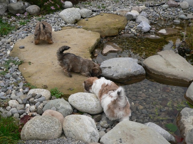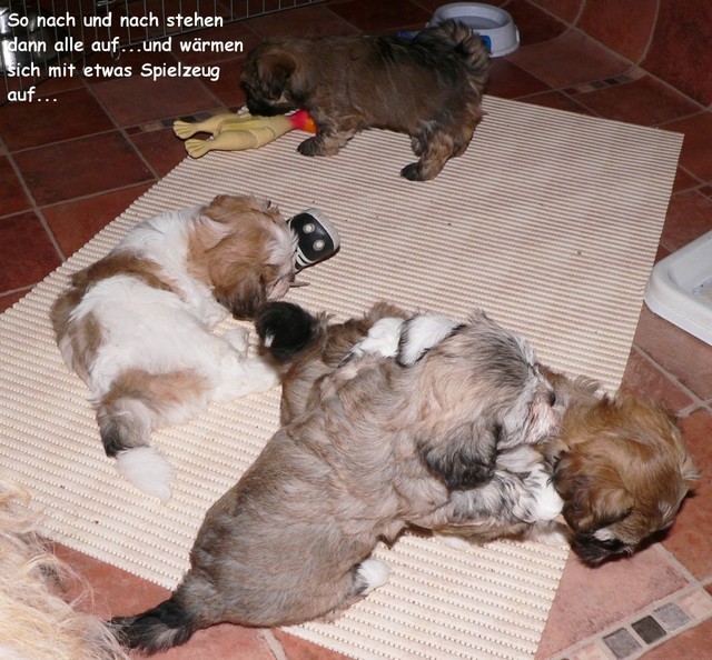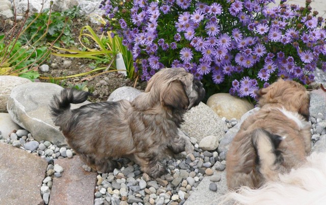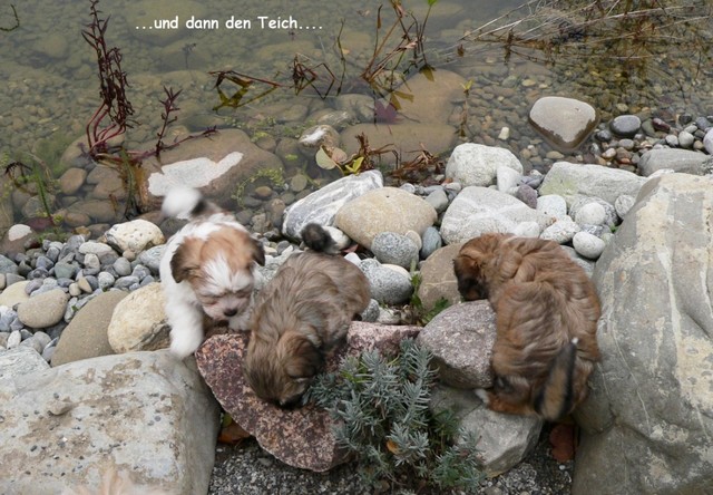 Das Wetter erlaubte uns weiterhin Ausflüge mit unserer Rasselbande nach draußen. Dort kann man sich gar nicht satt sehen an den quirligen Zwergen, die einen Riesenspaß haben. Sie rennen, raufen und klettern um die Wette - so machen ihnen die recht niedrigen Temperaturen nichts aus. Erst wenn sie müde werden, müssen wir sie einsammeln und zurück ins warme Haus bringen. So langsam kristallisieren sich auch Wasserliebhaber heraus - der letzte Wurf hat uns gelehrt, dass Stürze in den Teich NICHT immer zufälliger Natur sein müssen...