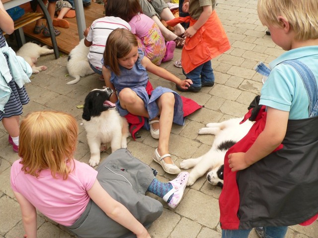 und 7,5 kg und werden von Tag zu Tag wendiger und schneller. Sie freuen sich sehr über die vielen Besucher und genießen besonders die Kinder, die meist unermüdliche Spielgefährten sind! Auch Wiesen und Weiden dienen nun als Auslauf und es ist eine große Freude, der Rasselbande dort beim Spielen zuzusehen.