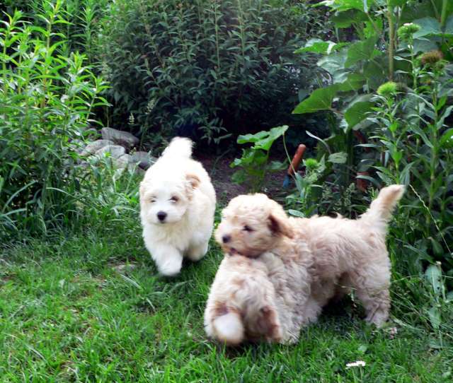 Inzwischen ist die zehnte Woche vorbei und es leben nur noch Bellmondo und Billbeau-Balou bei uns. Die übrigen vier Hundekinder sind am Wochenende von ihren neuen Familien abgeholt worden, die diesen Tag schon lange herbeigesehnt haben. Während wir noch unter dem Eindruck des Abschiedsschmerzes stehen, haben sich die Kleinen schon ganz gut in ihrem neuen Zuhause eingelebt.