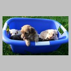 Die motorischen Fähigkeiten entwickeln sich rasant weiter. So erlebt man inzwischen auch Galoppaden im Welpenauslauf, die NICHT in einem Stolpern über die eigenen Füße enden...Geschwister werden geschickt attackiert und Fluchtversuche wie Verteidigungsstrategien fallen erfolgreicher aus. Die Charakterunterschiede treten noch deutlicher zutage: So gibt es quirligere und verspieltere wie auch eher ruhige und gemütlichere Kandidaten unter den Welpen.