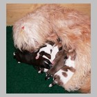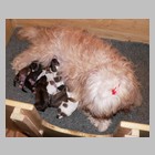 Die Babys zeigen inzwischen einen gemeinsamen Schlaf-Wach-Rhythmus. Sind sie wach, dann geht es hoch her in der Kiste: Jeder Welpe versucht voll Tatendrang, eine Zitze zu erwischen und tut lautstark seinen Protest kund, wenn ihm das nicht gleich gelingt, weil sich ihm Geschwister in den Weg stellen...